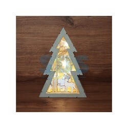 Деревянная фигурка с подсветкой «Елочка» 20?6,5?29 см — необычное светодиодное украшение, выполненное в вид е елочки с многослойной композицией: на фоне резных деревьев расположены фигуры оленей, подсвечиваемые 8 диодами. Теплый белый свет создает ощущение зимней сказки, в которую вам непременно захочется окунуться. В нижней части изделия находится батарейный блок для двух элементов питания типа ААА и кнопка ON/OFF. Интерьерный декор из экологичного дерева станет прекрасным подарком и любимой игрушкой ребенка.