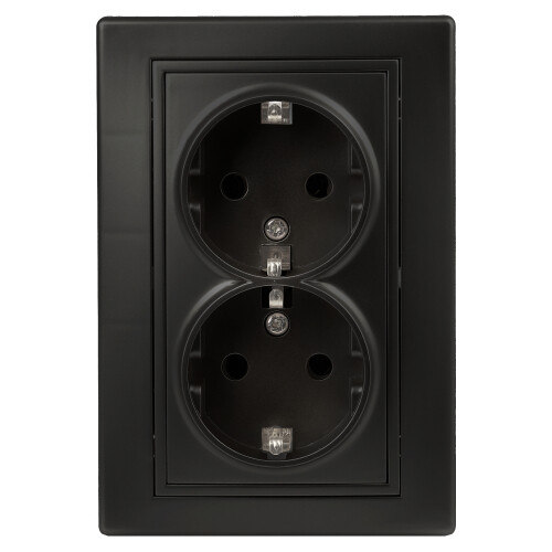 Розетка двойная 2-я серии Intro Plano скрытой установки цвет антрацит 1-205-05. Номинальные характеристики 16А 250В. Розетка выполнена из керамики, укомплектована одноместной рамкой, оснащена винтовыми клеммами. Клеммы с двумя отверстиями позволяют соединять соседние розетки шлейфом. Установка в подрозетник производится как на монтажные лапки, так и на винты.