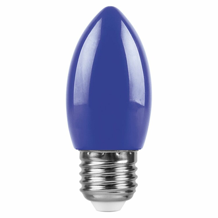 Лампа светодиодная FERON LB-376, C35 (свеча), 1W 230V E27 (синий), рассеиватель матовый синий, угол рассеивания 220°, 85*35мм