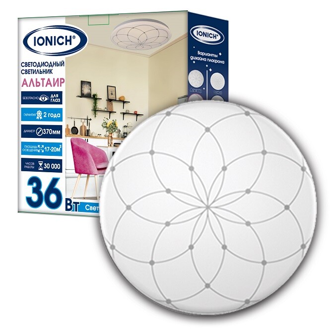 IONICH "АЛЬТАИР" 2219 36Вт 2500Лм 230В 6500К 370мм IP20 светильник светодиодный декоративный 1/20