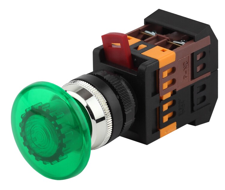 ЭРА Кнопка AELA22 "Грибок" зеленый d22мм неон/240В 1з+1р (10/400/3200)