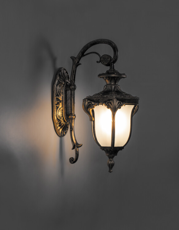 Светильник садово-парковый, серии «Флоренция», (НБУ) FERON PL4042 60W, E27, 230V, IP44, цвет черное золото, 6-и гранник, на стену вниз, 270*175*410мм