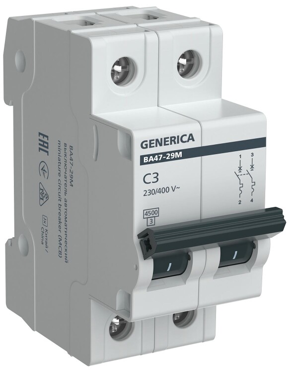 IEK GENERICA Авт. выкл. ВА47-29М 2P 3А 4,5кА C