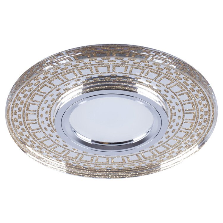 Светильник потолочный встраиваемый (ИВО) FERON CD981, под лампу с LED подсветкой 15LED*2835 SMD 4000K, MR16 G5.3, прозрачный-золото хром, круг, 110*110*22 мм, монтажный диаметр 60мм, корпус стекло, неповоротный