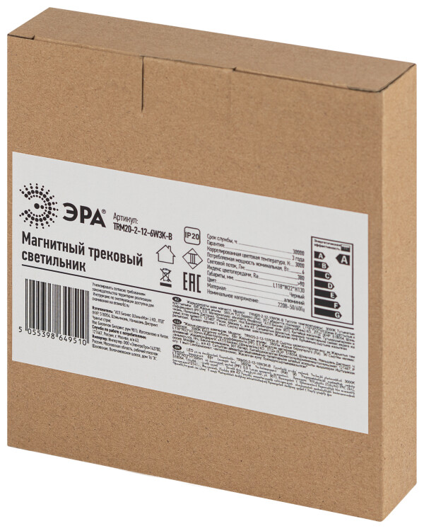 ЭРА Магнитный трековый светильник TRM20-2-12-6W3K BK светодиодный 6Вт 3000К черный для системы NOVA