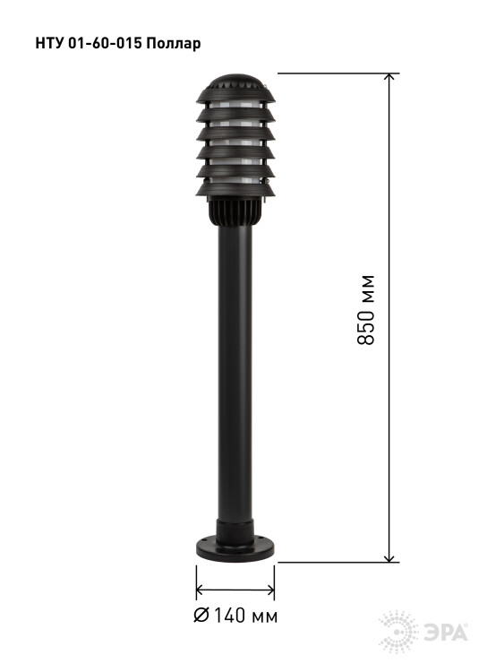 Уличный напольный светильник ЭРА под лампу с цоколем Е27 (60 Вт) - практичный и эстетичный вариант для оформления садово-парковых зон, прогулочных дорожек, придомовых территорий, фасадов.