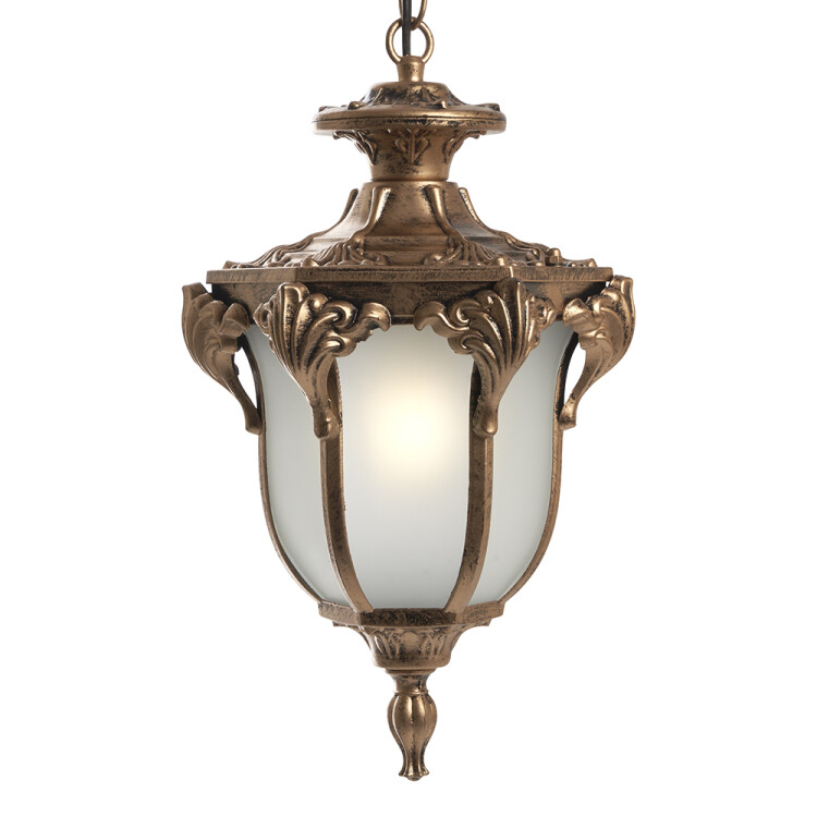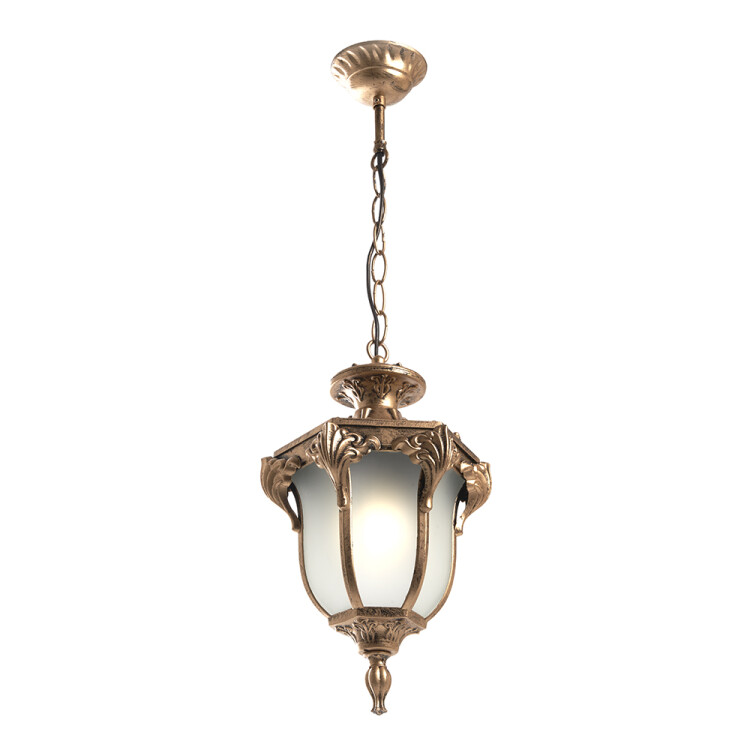 Светильник садово-парковый, серии «Флоренция», (НСУ) FERON PL4044 60W, E27, 230V, IP44, цвет черное золото, 6-и гранник, на цепочке, 200*175*840мм