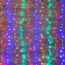 Гирлянда «Дождь» 1,5?1,5 м выполнена в виде за навеса и во включенном состоянии создает россыпь разноцветных огней, которые меняют ритм свечения под управлением контроллера. Контроллер имеет 8 режимов свечения: 7 динамических и 1 статичный. 144 ярких разноцветных светодиода, расположенных на проводе из прозрачного ПВХ, в затемненном помещении создают эффект струящегося дождя — великолепное зрелище, которое привлекает внимание и заставляет подолгу любоваться игрой света. Гирлянда подключается в электросеть 230 В при помощи шнура питания длиной 3 метра. Светодиодный занавес — идеальное решение для оформления окон.