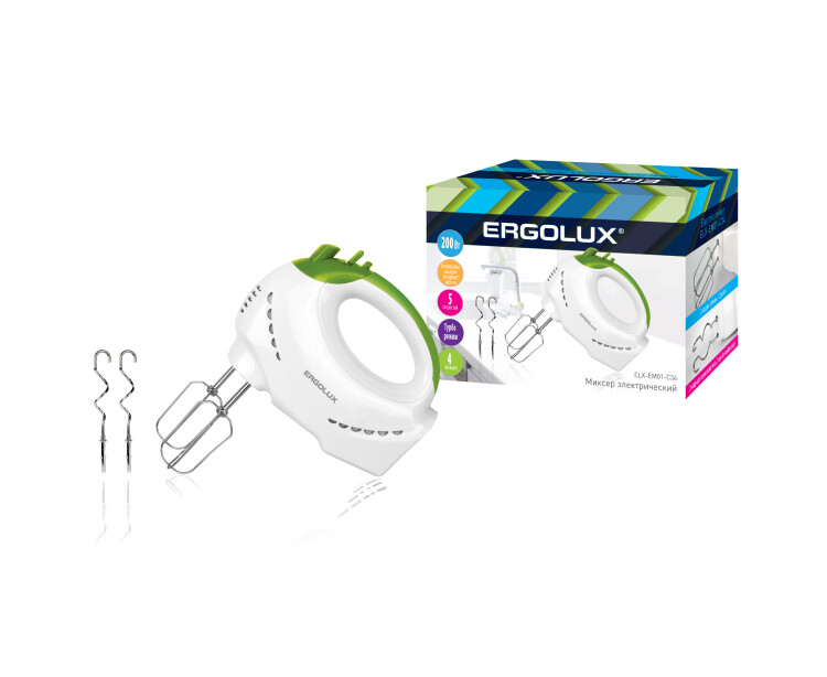 ERGOLUX ELX-EM03-C34 бело-салатовый (миксер ручной 150 Вт, 220-240В)
