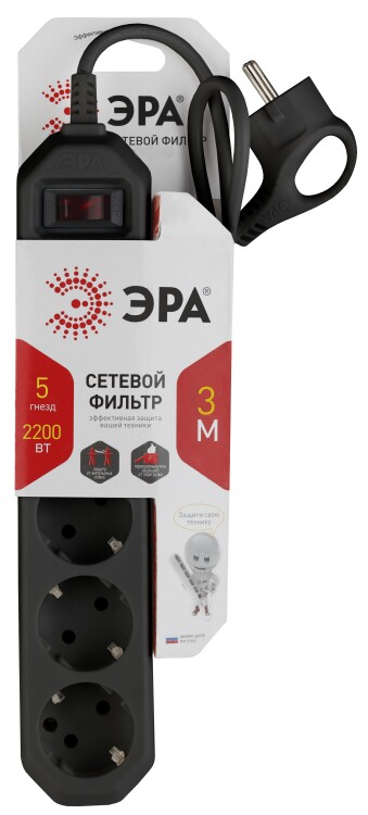 Сетевой фильтр ЭРА USF-5es-3m-B выступает как удобный удлинитель с проводом 3 м, который при необходимости можно перемещать в пределах квартиры, например, во время уборки. При этом из него можно не выключать компьютерную технику и не бояться перегрузки. Сетевой фильтр имеет 5 розеток с заземлением, защищает от короткого замыкания и импульсных помех. Его суммарная мощность составляет 2200 Вт, что позволяет бесперебойно работать нескольким предметам техники одновременно. На корпусе расположен выключатель для удобного обесточивания всех подключенных устройств. Сетевой фильтр ЭРА просто необходим в современном доме благодаря своей многофункциональности. Сетевые фильтры ЭРА разрабатываются собственным техническим бюро, проходят проверку на всех этапах производства, что обеспечивает высокое качество продукта.