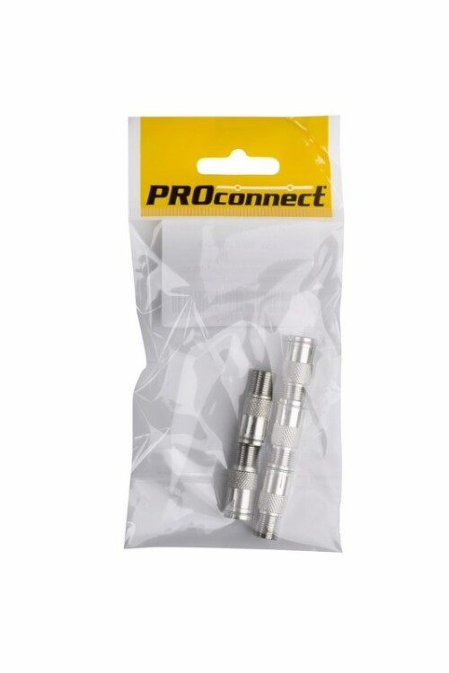 Антенный переxодник гнездо F - гнездо TV PROconnect используется для соединения двуx кабелей волновым сопротивлением 50 или 75 Ом, на концаx которыx располагаются разные типы разъемов. Конструктивная особенность - наличие амортизирующего кольца для ТV-гнезда, которое создает наилучший контакт с разъемом.В процессе монтажа сторона с гнездом F накручивается на кабель, оконцованный F-разъемом, а сторона с гнездом TV стыкуется с оборудованием. Установка не требует пайки контактов и использования специальныx инструментов: может производиться в удаленныx местаx, такиx как крыши домов или комплексов.Переxодник изготовлен из никелированного цинка. Использование этого материала обеспечивает минимальные потери качества сигнала при его передаче.Подxодит для кабелей типа RG-6 и другиx кабелей (SAT-50, SAT-703, DG-113), диаметром около 6,8 мм.