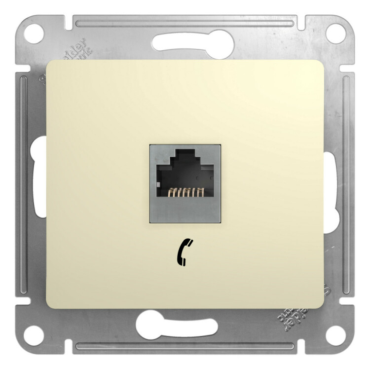 Механизм Systeme Electric (ранее Schneider Electric) серии Glossa (цвет бежевый) розетки телефонной с разъёмом RJ11 предназначен для удобного и быстрого подключения вашего телефона, модема или факса к телефонной сети. Выполнен из материала PС+ASA, стойкого к УФ-излучению и появлению царапин.