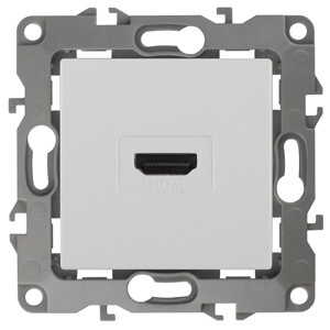 Розетка HDMI серии Эра 12 скрытой установки механизм цвет белый 12-3114-01. Сделана из поликарбоната. Монтаж в подрозетник производится и на лапки, и на винты. Рамки приобретаются отдельно. Рамки Эра 12: 1 пост 12-5001-хх, 2 поста 12-5002-хх, 3 поста 12-5003-хх, 4 поста 12-5004-хх, 5 постов 12-5005-хх. Рамки Эра 12 Сатин: 1 пост 12-5101-хх, 2 поста 12-5102-хх, 3 поста 12-5103-хх, 4 поста 12-5104-хх, 5 постов - 12-5105-хх (хх - код цвета: 01-белый, 02-слоновая кость, 03-алюминий, 04-шампань, 05-антрацит, 06-чёрный, 07-ольха(белёный дуб-сатин), 08-вишня, 09-дуб, 10-венге, 11-сосна, 21-жёлтый, 22-оранжевый, 23-красный, 24-охра, 25-бордо, 26-лайм, 27-зелёный, 28-голубой, 29-синий).