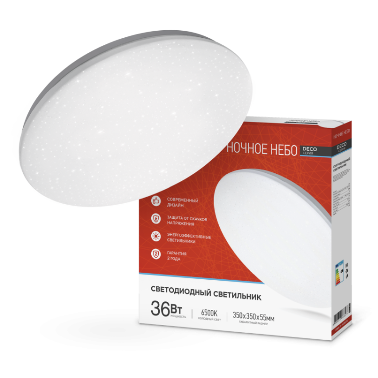 IN HOME Светильник светодиодный серии DECO 36Вт 230В 6500К 2340лм 350х55мм НОЧНОЕ НЕ БО 1/10
