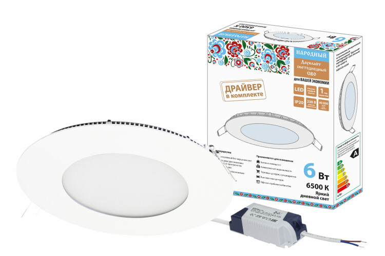 TDM Светильник ультратонкий встраиваемый светодиодный "Даунлайт НАРОДНЫЙ" СВО (белый) 6 Вт 6500К.
