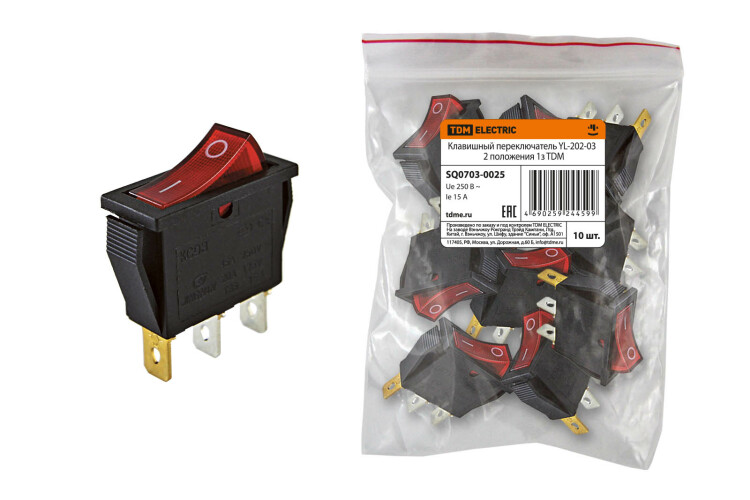 TDM Клавишный переключатель YL-202-03 черный корпус красная клавиша 2 положения 1з