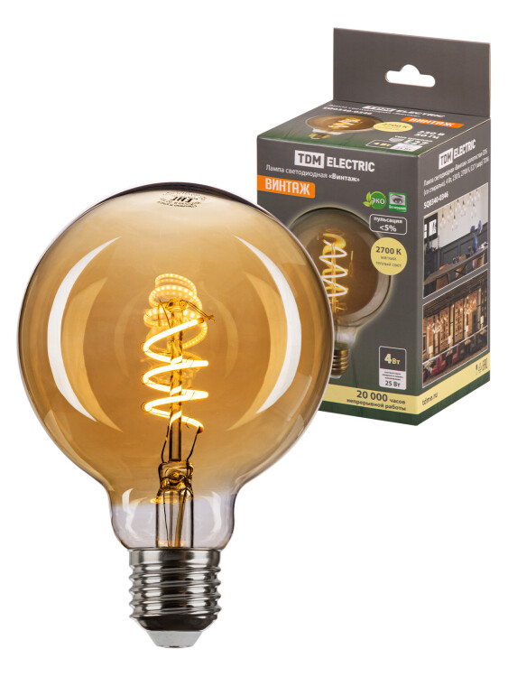 Применение: Для декоративного и общего освещения мест отдыха, стилизации пространства.Преимущества: Устанавливаются в светильниках с напряжением питания от 12 до 24 В или от 24 до 48 В (в крупные колбы) и их форма позволяет использовать лампы Винтаж в светильниках без плафонов или с подвесными патронами.Золотистое покрытие колбы и теплый свет мягко впишутся в стилистику деревянного дома, поддержат стиль серии ЭКО.В качестве источника света применяются светодиодные нити (филамент), благодаря чему лампы не нагреваются и долго служат.Срок службы ламп 20 000 часов. Не требуют специальной утилизации. Упаковка:Цветная картонная коробка.