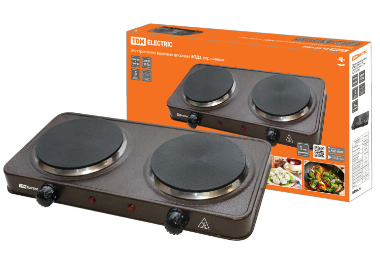TDM Электроплитка двухконф. ЭПД2 230 В, 2х1 кВт, диск, коричневая.