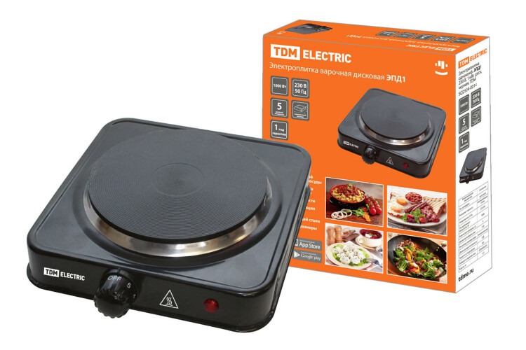 TDM Электроплитка одноконф. ЭПД1 230 В, 1 кВт, диск, черная.