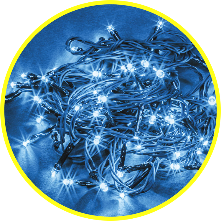 тип гирлянды - нить; цвет свечения - синий; 8 режимов свечения; общая длина - 11,5 м; длина провода до первого светодиода - 1,5 м; количество светодиодов - 100 шт; расстояние между светодиодами - 10 см; тип провода - зеленый ПВХ; степень защиты - IP20; температура эксплуатации от -20 до +40°С; срок службы - 50000 часов; гарантия - 12 месяцев.