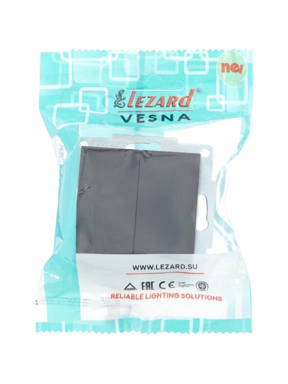 Lezard VESNA Выключатель двойной чёрный бархат (10шт/120шт)