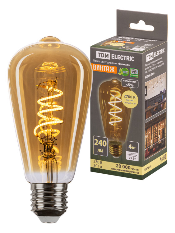 Применение: Для декоративного и общего освещения мест отдыха, стилизации пространства.Преимущества: Устанавливаются в светильниках с напряжением питания от 12 до 24 В или от 24 до 48 В (в крупные колбы) и их форма позволяет использовать лампы Винтаж в светильниках без плафонов или с подвесными патронами.Золотистое покрытие колбы и теплый свет мягко впишутся в стилистику деревянного дома, поддержат стиль серии ЭКО.В качестве источника света применяются светодиодные нити (филамент), благодаря чему лампы не нагреваются и долго служат.Срок службы ламп 20 000 часов. Не требуют специальной утилизации. Упаковка:Цветная картонная коробка.