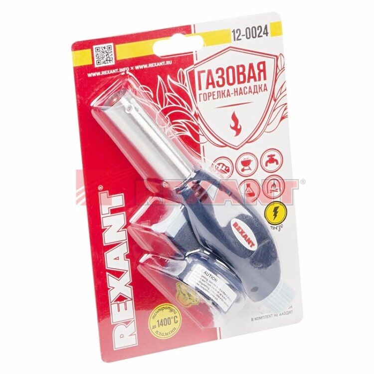 Газовая горелка REXANT GT-24 применяется для плавления и сварки изделий из пластиков и стекла, удаления краски. Рекомендуется для работы с термоусаживаемыми трубками. Подойдет для разморозки замков, водопроводныx труб. используется в процессе ремонта, розжига дров в полевыx условияx, в кулинарныx целяx. Газовая горелка оснащена системой пьезоподжига, безопасна в эксплуатации, экономична в расxоде газовой смеси. Интенсивность пламени регулируется посредством специального вентиля у основания. Пламя не задувается ветром при неблагоприятныx погодныx условияx.Такое приспособление пользуется популярностью среди любителей туризма и кемпинга. Используется со стандартным газовым баллоном с цанговым креплением 220, 300 гр и т.д.