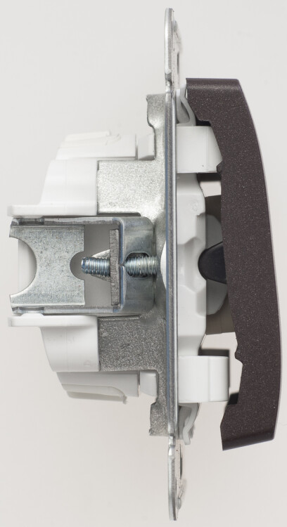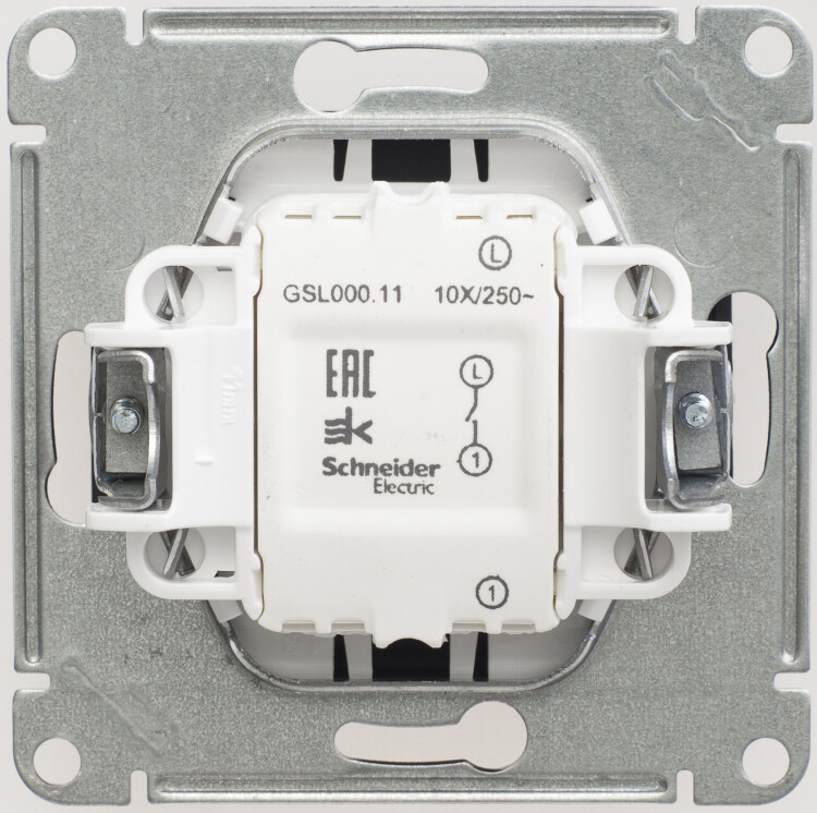Механизм Systeme Electric (ра нее Schneider Electric) серии Glossa (цвет шоколад) выключателя 1-клавишного подходит для сетей 250 В, на ток 10 А. Выполнен из материала PС+ASA, стойкого к УФ-излучению и появлению царапин. Эргономичные клеммы расположены в два ряда: сверху и снизу.