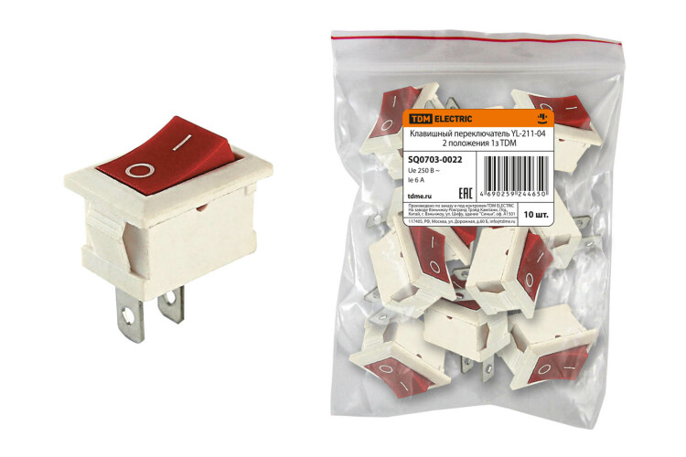 TDM Клавишный переключатель YL-211-04 белый корпус красная клавиша 2 положения 1з