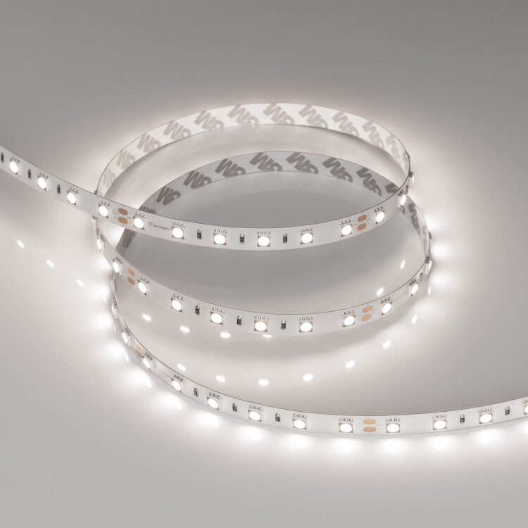 Поставка под заказ от 250 м. Светодиодная лента RT серии B60 с высоким индексом цветопередачи. Светодиоды SMD 5060, 60 шт/м, белая плата шириной 10 мм, скотч 3М. Цвет ДНЕВНОЙ 5000K, индекс цветопередачи CRI>95...98, угол 120°. Питание 24 В, мощность 14.4 Вт/м (72 Вт на 5 м). Размеры 5000х10х2.2 мм. Мин. отрезок 100 мм, 6 светодиодов. Цена за 1 м. Кратность заказа поставщику: 5 м.