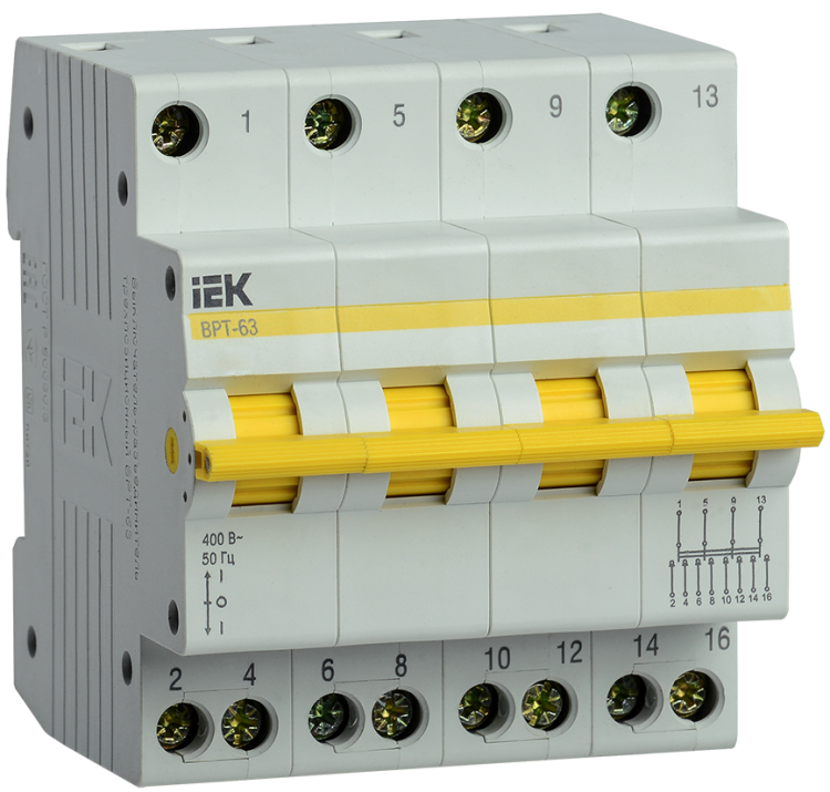 Выключатель-разъединитель трехпозиционный ВРТ-63 предназначен для коммутации смешанных активных и и ндуктивных нагрузок в цепях переменного тока напряжением до 400 В частотой 50 Гц.