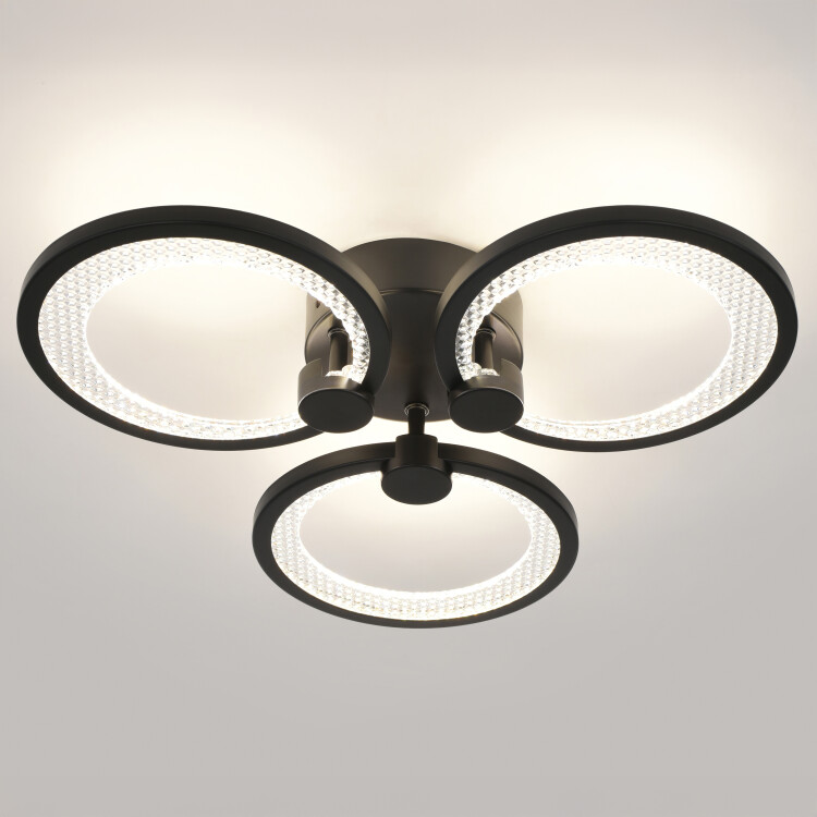 Серия потолочных светодиодных светильников-колец в стильном чёрном цвете — современное решение для уютного и функционального освещения. В комплекте пульт ДУ с регулировкой яркости и цветовой температуры в диапазоне 3000–6500К. Мощность моделей от 46 до 117 Вт позволяет выбрать оптимальный вариант для помещений любого размера.