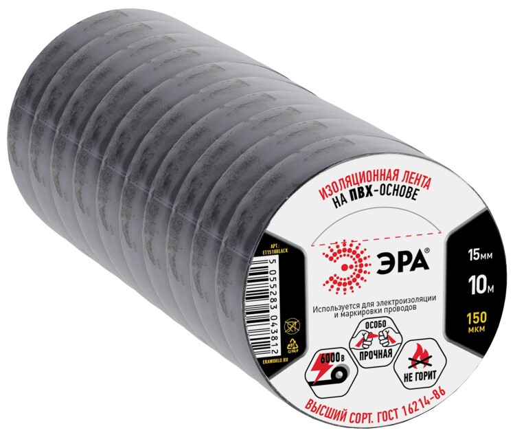 ЭРА Изолента ET1510BLACK ПВХ 15мм х 10м черная