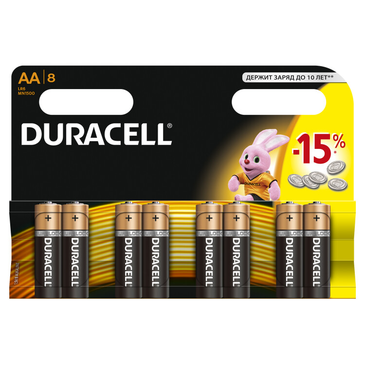 Duracell 81545410 Алкалиновая батарейка типа AA / LR6 / MN 1500" LR6-8BL BASIC