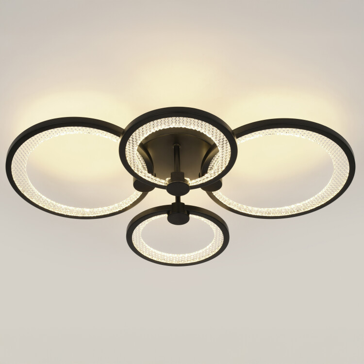 Серия потолочных светодиодных светильников-колец в стильном чёрном цвете — современное решение для уютного и функционального освещения. В комплекте пульт ДУ с регулировкой яркости и цветовой температуры в диапазоне 3000–6500К. Мощность моделей от 46 до 117 Вт позволяет выбрать оптимальный вариант для помещений любого размера.