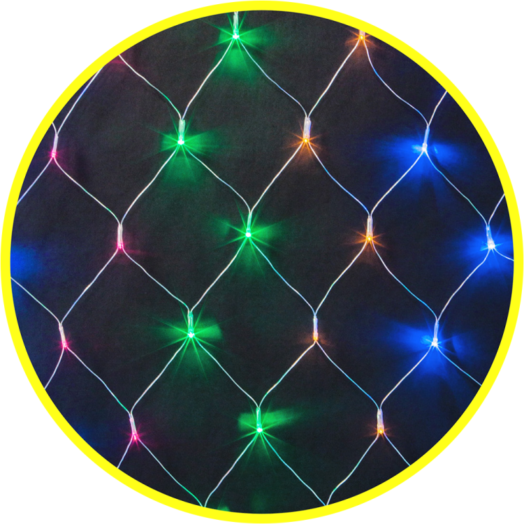тип гирлянды - сеть ; цвет свечения - разноцветное RGBY; 8 режимов свечения; размер - 1,5х1,5 м; длина провода до первого светодиода - 1,5 м; количество светодиодов - 160 шт; расстояние между светодиодами - 12 см; тип провода - прозрачный ПВХ; степень защиты - IP20; температура эксплуатации от -20 до +40°С; срок службы - 50000 часов; гарантия - 12 месяцев.