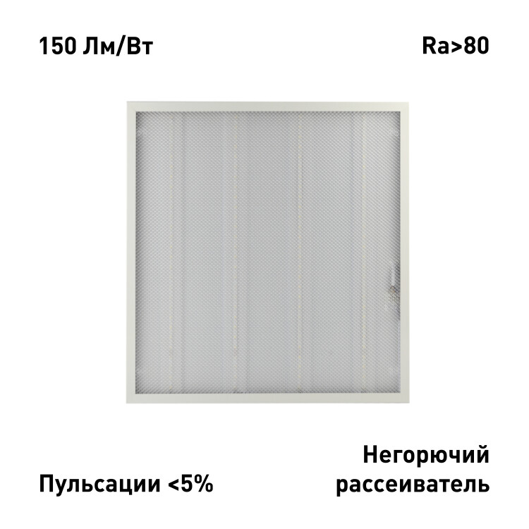Универсальная светодиодная панель. Подходит для использования в школах, поликлинниках, офисных помещениях, холлах. Поставляется с драйвером в комплекте.