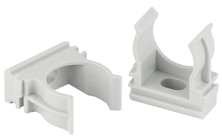 Используется для крепления гофрированных и гладких труб к поверхности стен или потолка. Для крепления к поверхности в крепёж-клипсе предусмотрено технологическое отверстие под саморез или дюбель.