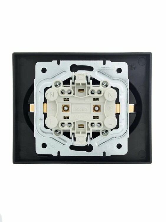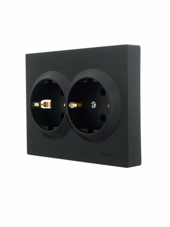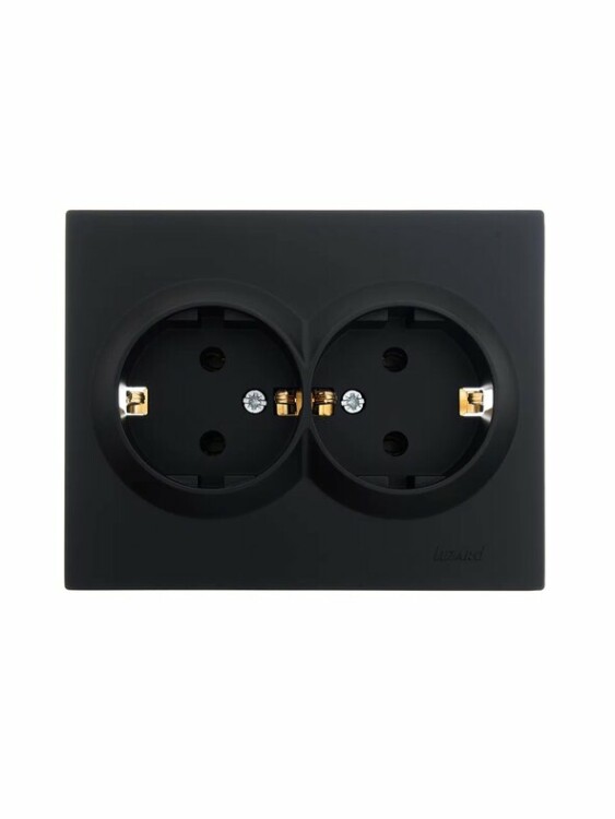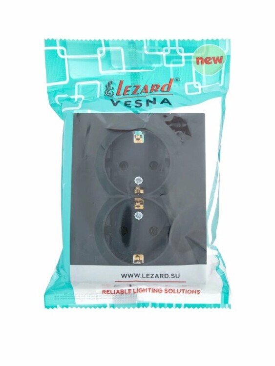 Lezard VESNA Розетка двойная с/з ПБТ чёрный бархат (10шт/120шт)