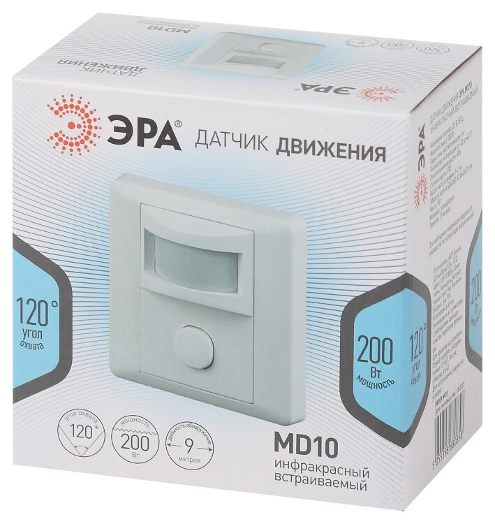 Датчик движения скрытой установки со встраиваемым монтажным механизмом - отличное решение для замены стационарного выключателя. Автоматически включает осветительные приборы при обнаружении движения в области чувствительности сенсора (радиус охвата 9 метров, угол охвата 120 градусов). Автоматически отключает свет при отсутствии движения в сенсорной зоне. Время выключения можно регулировать в интервале от 10 секунд до 7 минут. Устройство позволяет экономить время и деньги: выключатель света искать в темноте больше не нужно; освещение выключается, когда в нём нет необходимости. Есть возможность отрегулировать настройки чувствительности к внешней освещенности датчик будет срабатывать только при необходимости искусственного освещения. Мощность 200 Вт.