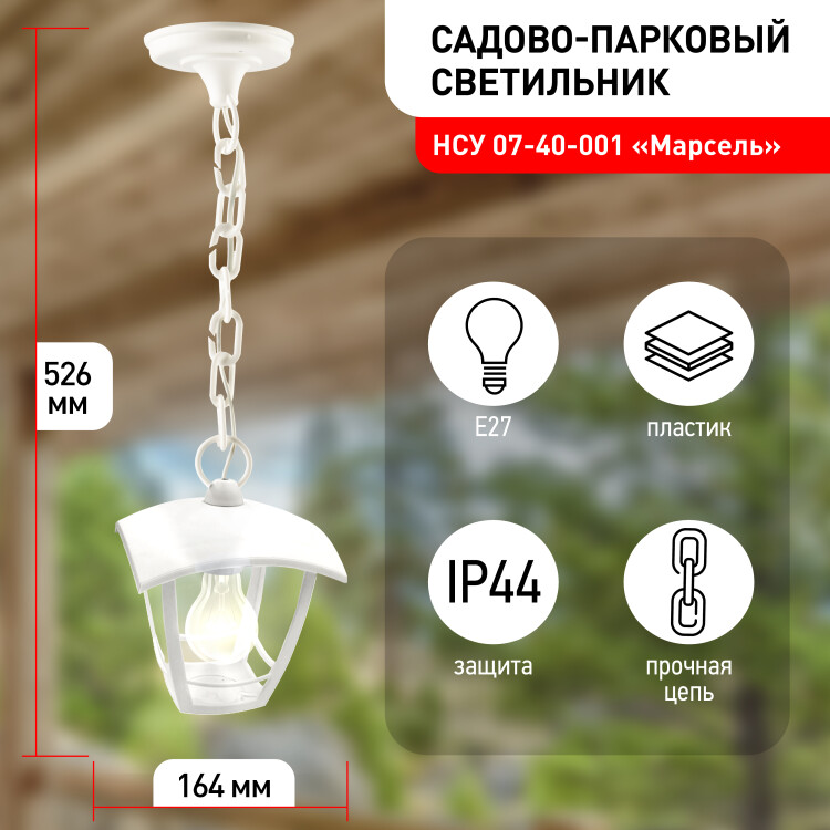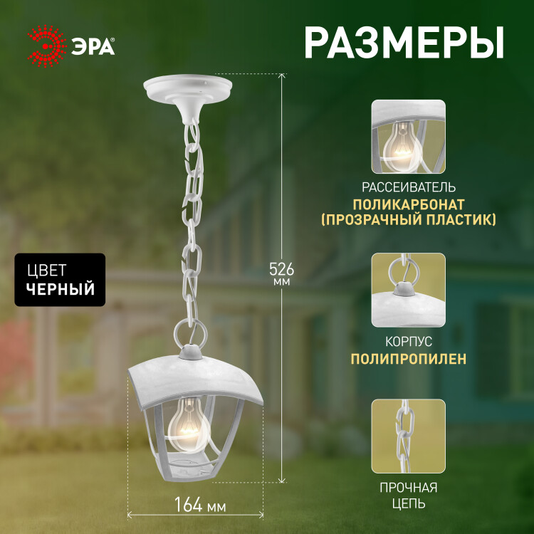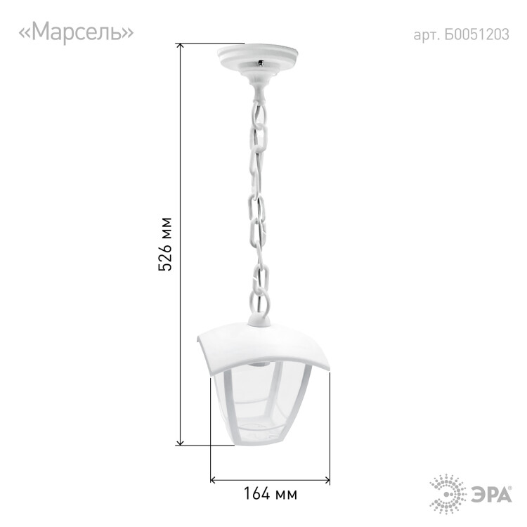 ЭРА Светильник садово-парковый 4гран белый подвесной E27 IP44(У1) НСУ 07-40-001 «Марсель» (8/48)