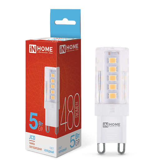 IN HOME Лампа светодиодная LED-JCD 5Вт 230В G9 6500К 480Лм 20/1000