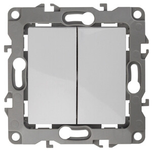 Выключатель 2-клавишный проходной серии Эра 12 скрытой установки механизм цвет белый 12-1106-01. Номинальные характеристики 10А 250В . Сделан из поликарбоната, оснащёно автоматическими клеммами для быстрй и надёжной фиксации жил кабеля в механиме. Парные клеммы обеспечивают соединение шлейфом. Монтаж в подрозетник производится и на лапки, и на винты. Рамки приобретаются отдельно. Рамки Эра 12: 1 пост 12-5001-хх, 2 поста 12-5002-хх, 3 поста 12-5003-хх, 4 поста 12-5004-хх, 5 постов 12-5005-хх. Рамки Эра 12 Сатин: 1 пост 12-5101-хх, 2 поста 12-5102-хх, 3 поста 12-5103-хх, 4 поста 12-5104-хх, 5 постов - 12-5105-хх (хх - код цвета: 01-белый, 02-слоновая кость, 03-алюминий, 04-шампань, 05-антрацит, 06-чёрный, 07-ольха(белёный дуб-сатин), 08-вишня, 09-дуб, 10-венге, 11-сосна, 21-жёлтый, 22-оранжевый, 23-красный, 24-охра, 25-бордо, 26-лайм, 27-зелёный, 28-голубой, 29-синий).