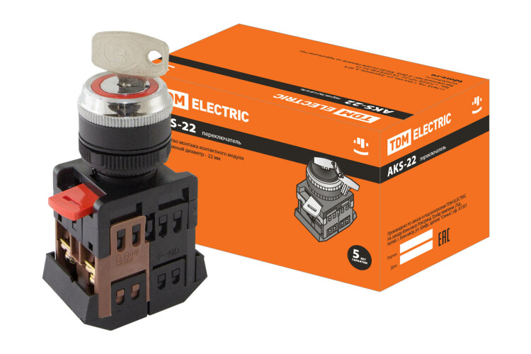 TDM Переключатель АKS-22 черный с ключом на 2 фиксир.положения I-O 1з+1р