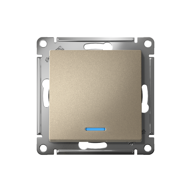 Механизм выключателя 1-клавиш ного с подсветкой Systeme Electric (ранее Schneider Electric) серии AtlasDesign в цвете шампань подходит для сетей 250 В, на ток 10 А. Благодаря светодиодной подсветке синего цвета изделие легко найти в темноте. Лицевые детали из качественного ABS-пластика, устойчивого к царапинам и УФ-излучению. Усиленные прямые монтажные лапки для лучшей фиксации механизма в монтажной коробке.