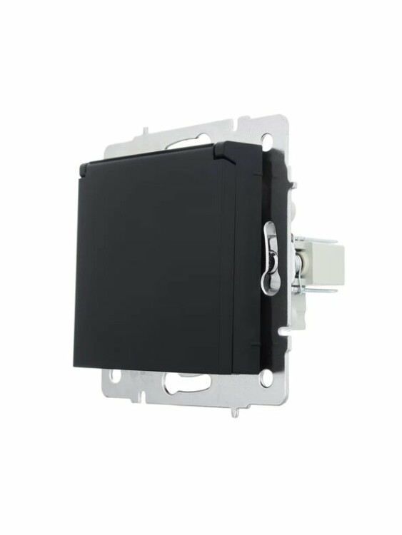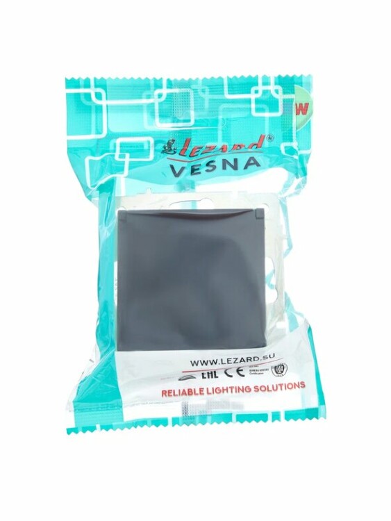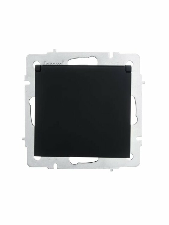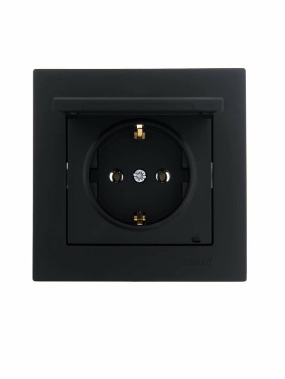 Lezard VESNA Розетка с/з с крышкой ПБТ чёрный бархат (10шт/120шт)