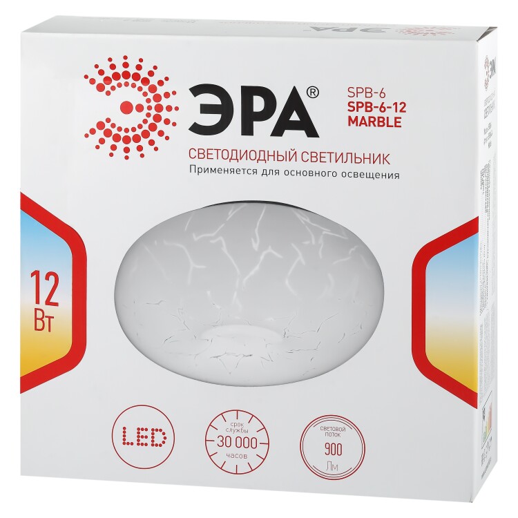 Светодиодный светильник ЭРА SPB-6 - 12 серии Marble привнесет в интерьер неповторимую атмосферу изысканности. Рассеиватель светильника выполнен в классическом белом цвете, украшен узорами, напоминающими мраморные, идеально впишется практически в любую комнату. Белый светодиодный светильник будет особенно эффектно смотреться в сочетании с классическим дизайном гардин и стен. Основание светильника выполнено из металла. Источником света служит LED модуль, срок службы которого составляет 30 000 часов. Цветовая температура светильника - 4000К, что соответствует белому свету, и наиболее комфортна для человека. Диаметр рассеивателя составляет 23 см, мощность лампы - 12 Вт. Потолочный светодиодный светильник одинаково элегантно смотрится во включенном и выключенном состоянии, привносит уют и тепло в домашнюю обстановку.