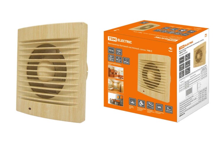TDM Вентилятор бытовой настенный, 100 С "ЭКО" (сосна).
