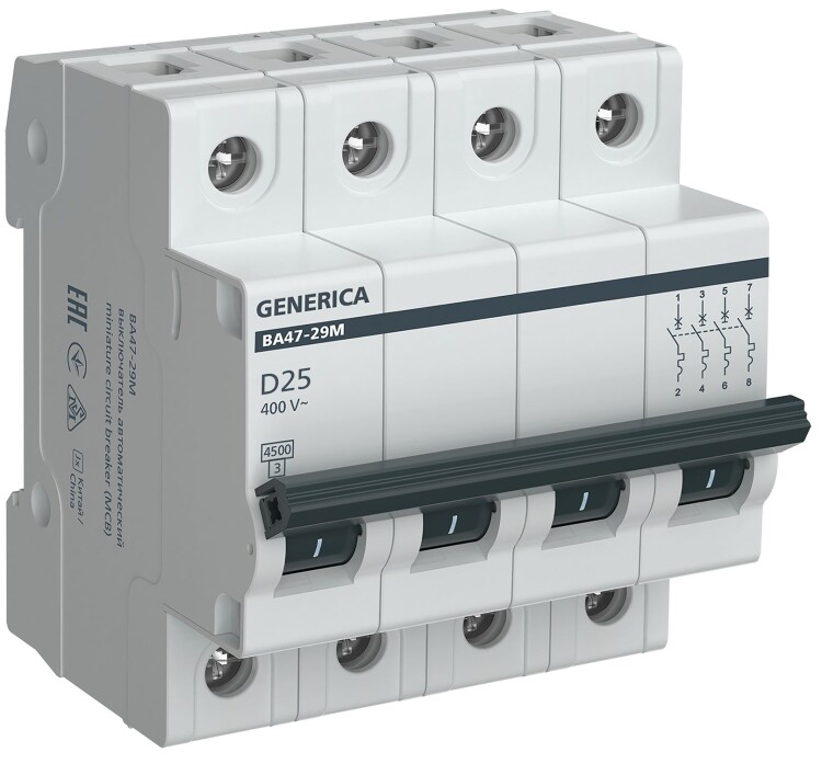 IEK GENERICA Авт. выкл. ВА47-29М 4P 25А 4,5кА D