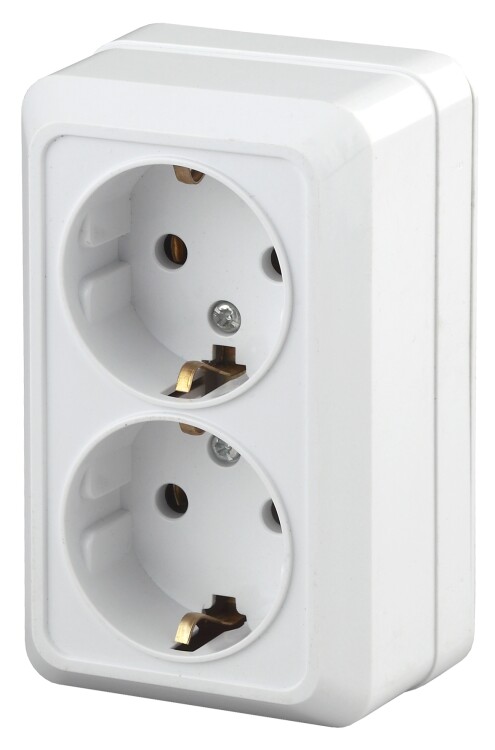 Розетка Intro Quadro 2Э-204-01 двойная с заземлением 2 х2P+E Schuko, 16А-250В, IP20, ОУ, без монтажной пластины, белый